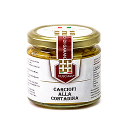 Il Carciofo (Cynara cardunculus) è un arbusto sensibile al gelo ed è originario dalla zona mediterranea, è un ortaggio dal sapore delicato e saporito, stimola l'appetito e favorisce la digestione. I cuori di carciofo sono noti come specialità culinaria in tutti i paesi del Mediterraneo. I nostri carciofi alla contadina vengono preparati solo con carciofi siciliani che vengono conditi con aromi come peperoncino, menta, prezzemolo ed olio, possono essere gustati come antipasto ma anche come contorno sfizioso.