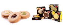 ripieno con crema bianca, pistacchio, cioccolato o mandorla, adatto per la prima colazione,