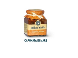 Melanzane,Peperoni,Pomodori,sedano,capperi,pinoli,cipolla,uva sultanina,pesce spada,gamberetti