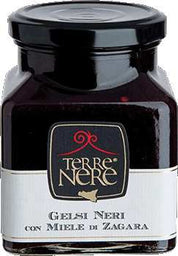 Ingredienti: gelsi neri, zucchero, succo fresco di limone, miele di zagara (2,5%).