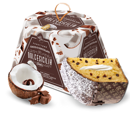 Panettone "COCCO E CIOCCOLATO" farcito con crema al cocco e gocce di cioccolato 800gr Dais