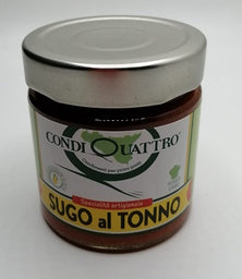 Polpa di pomodoro, Tonno all’olio d’oliva 12%, Olio extra vergine d’oliva, cipolla, zucchero, sale, olive, pepe nero.